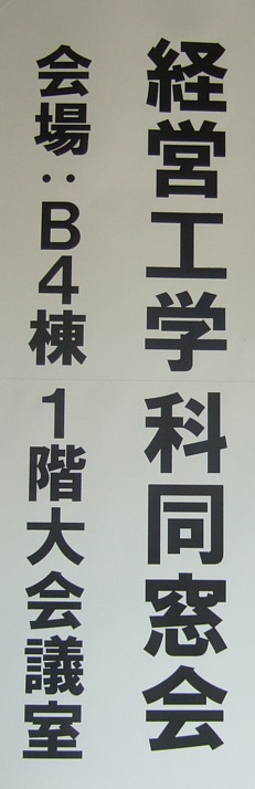 | 2年に1回開催されている経営工学科の全体同窓会に出席しました。 府大の組織が大幅に変わり学部学科制が廃止され学域制になりました。 経営工学科は消滅し、経営工学科の科目は残っていました。 経営工学科出身の女性教授が経緯を説明してくれました。 | |||