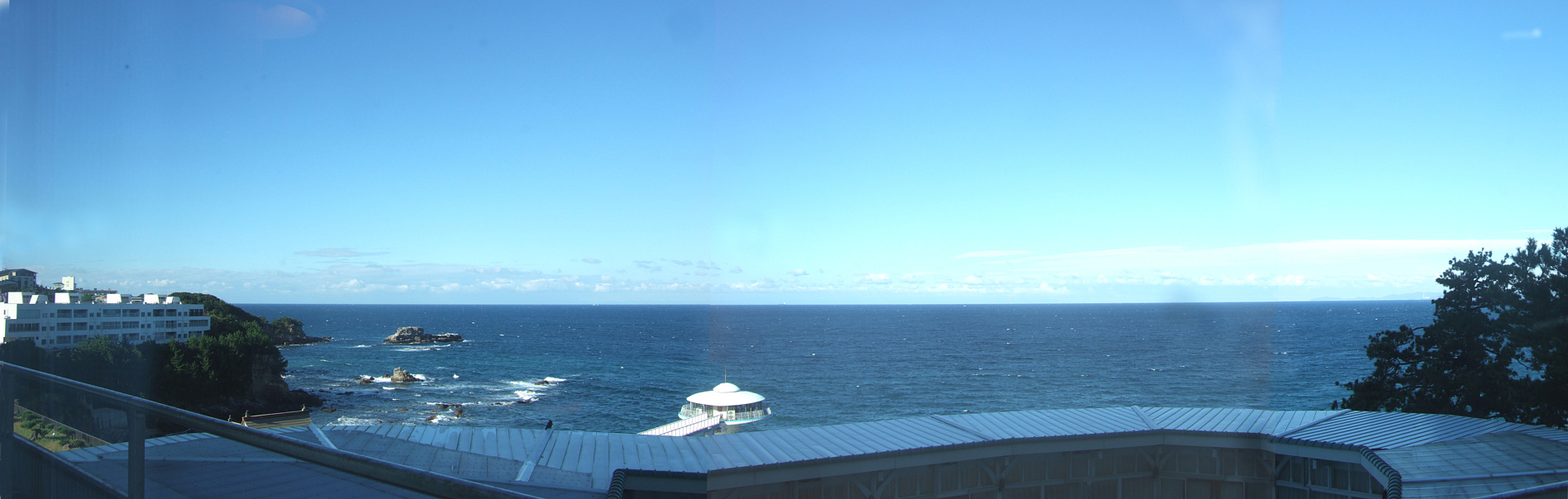 | ホテル全景 | 部屋から見た景色(3枚の合成) | 梅樽温泉・大浴場 |